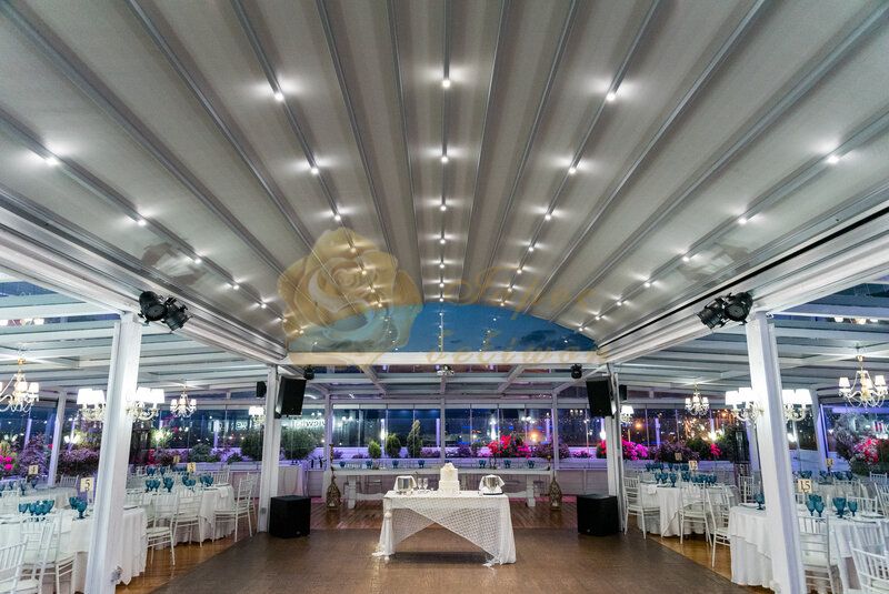 Στην αίθουσα του Roof Garden η δεξίωση του γάμου σας θα έχει το χρώμα του ουρανού, αφού η οροφή του αλλά και περιμετρικά είναι φτιαγμένη από γυαλί. Με το Αττικό λεκανοπέδιο στα πόδια σας και εσείς θα το απολαμβάνετε από ψηλά.