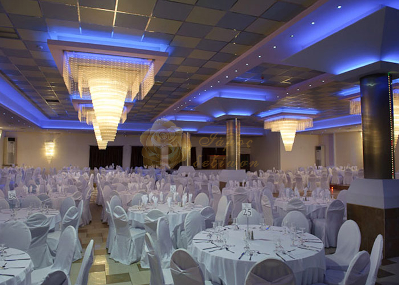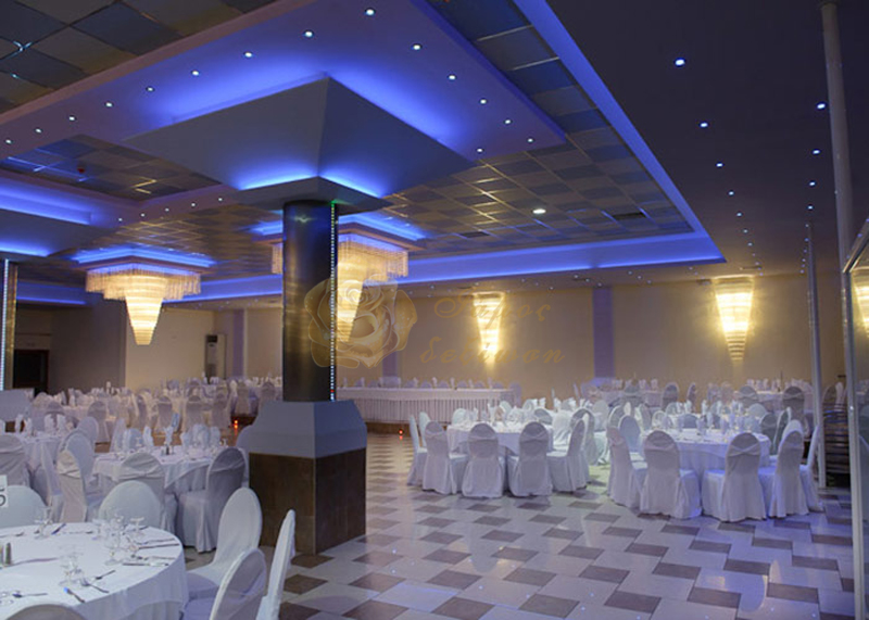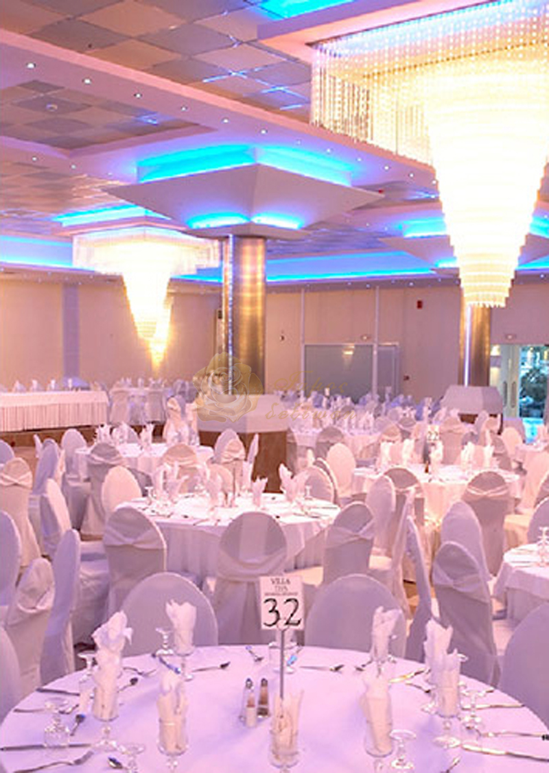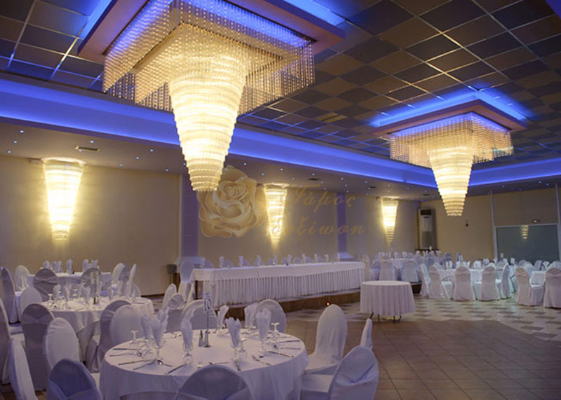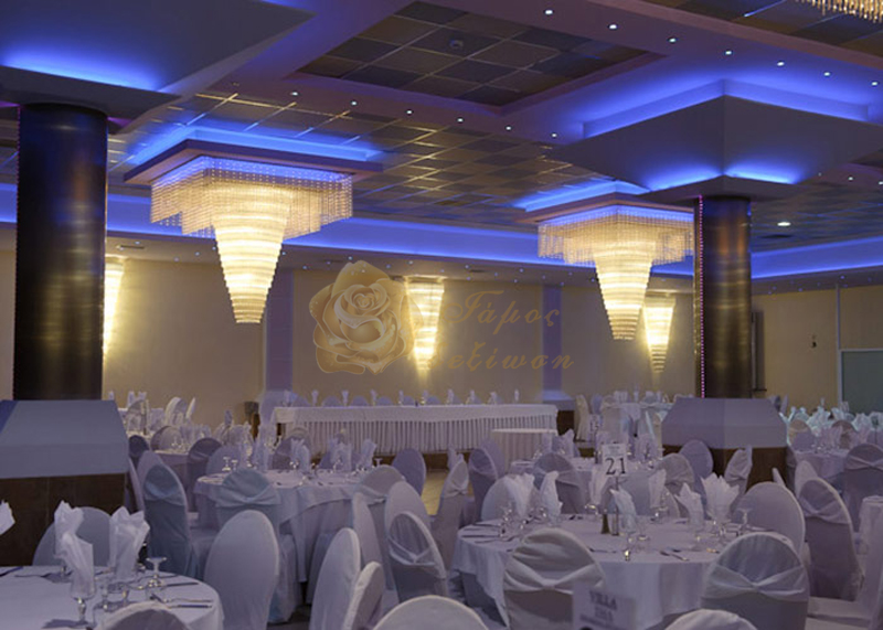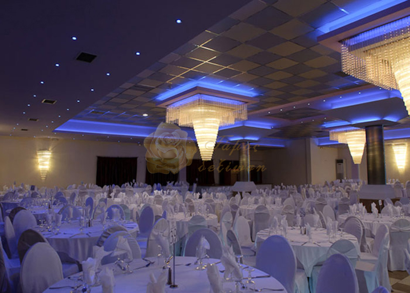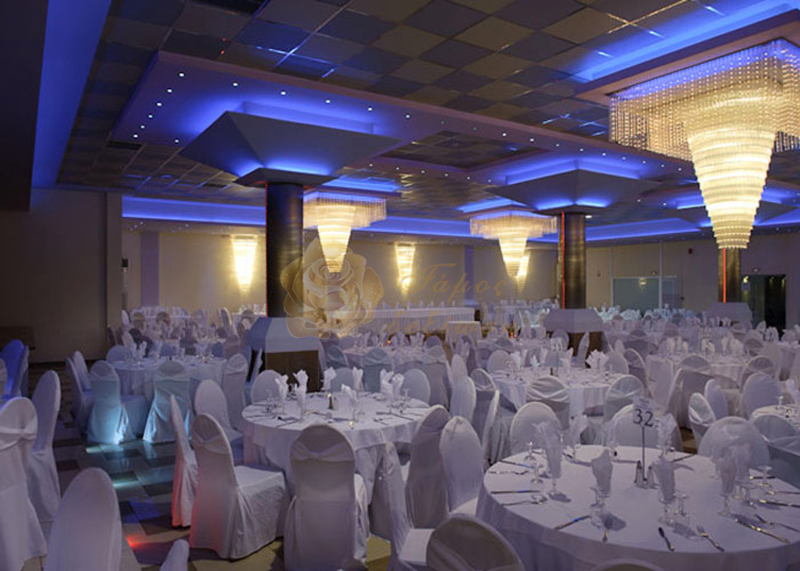 Η υψηλή αισθητική της αίθουσας σε συνδυασμό με την εξαιρετική θέα χαρίζουν σε κάθε εκδήλωση ένα χαρακτήρα πολυτέλειας. Μπορείτε να εμπιστευτείτε την διοργάνωση της γαμήλιας δεξίωσής σας στα έμπειρα χέρια του ομίλου. Το προσωπικό αναλαμβάνει μέχρι και την παραμικρή λεπτομέρεια για την πλήρη διοργάνωση της δεξίωσής σας, ενώ το έμπειρο και άμεσο σέρβις θα σας εξυπηρετήσει, πραγματοποιώντας οποιαδήποτε απαίτησή σας.