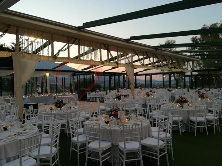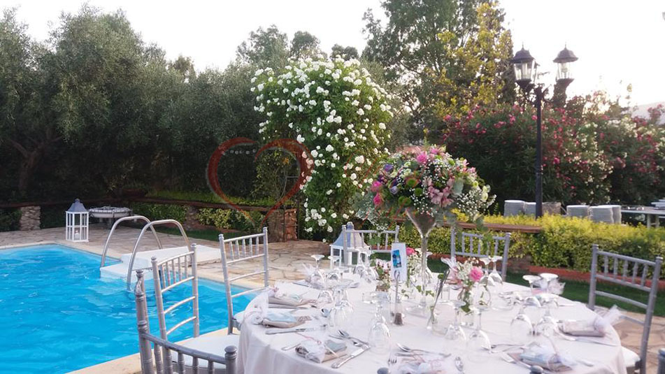 Μέσα σε ένα κτήμα 14ων στρεμμάτων, με το γραφικό του εκκλησάκι ιδανικό για την τελετή, την πισίνα στην μέση ενός ολάνθιστου κήπου όπου μπορείς να απολαύσεις ένα ποτό με πανοραμική θέα στον κάμπο και τελικά την αίθουσα, χωρητικότητας 500 καλεσμένων, που διαθέτει οροφή με ανάκληση και έτσι ο καιρός δεν μπορεί να είναι πρόβλημα, ο γάμος που είχατε πάντα ονειρευτεί, μπορεί να γίνει πραγματικότητα.