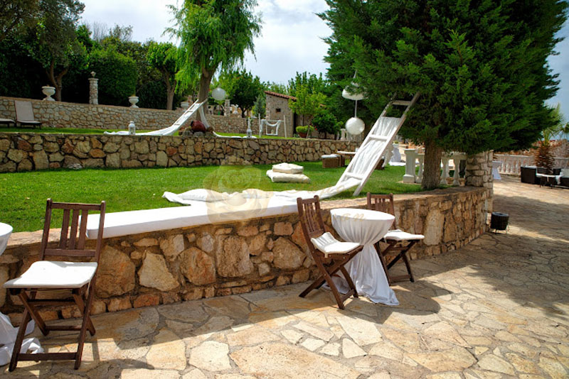 Ο εξωτερικός χώρος δεν στερείται κομψότητας αφού η πολυεπίπεδη μορφολογία του σας αφήνει να πλαισιώσετε με φαντασία και αίγλη τη μοναδική σας στιγμή.
