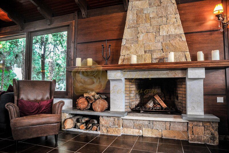 Chalet Velli (300 καθήμενοι) Σκανδιναβικό σαλέ με επιβλητικό τζάκι να ζεσταίνει με τις φλόγες του τους καλεσμένους σας και το κέφι να παίρνει φωτιά
